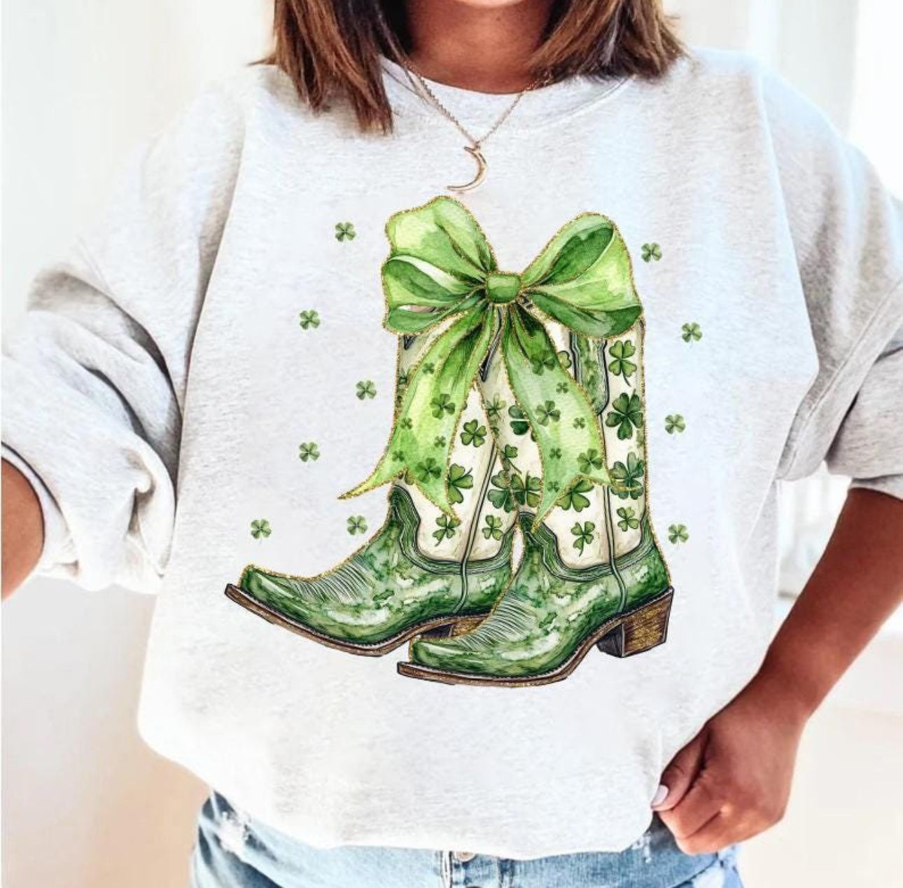 Looking for some luck? Look no further than our Pretty in Boots shamrock sweatshirt! With its stylish boots graphic and lucky shamrock design, this sweatshirt is perfect for keeping you warm and stylish. Don't miss out on being pretty (and lucky) in boots!